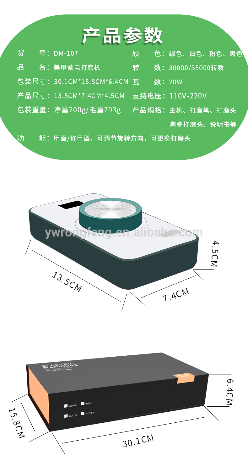 ໃໝ່ 2021 ສຽງດັງ 30000RPM Portable Rechargeable Nail Drill Titanium alloy drill pen DM-113