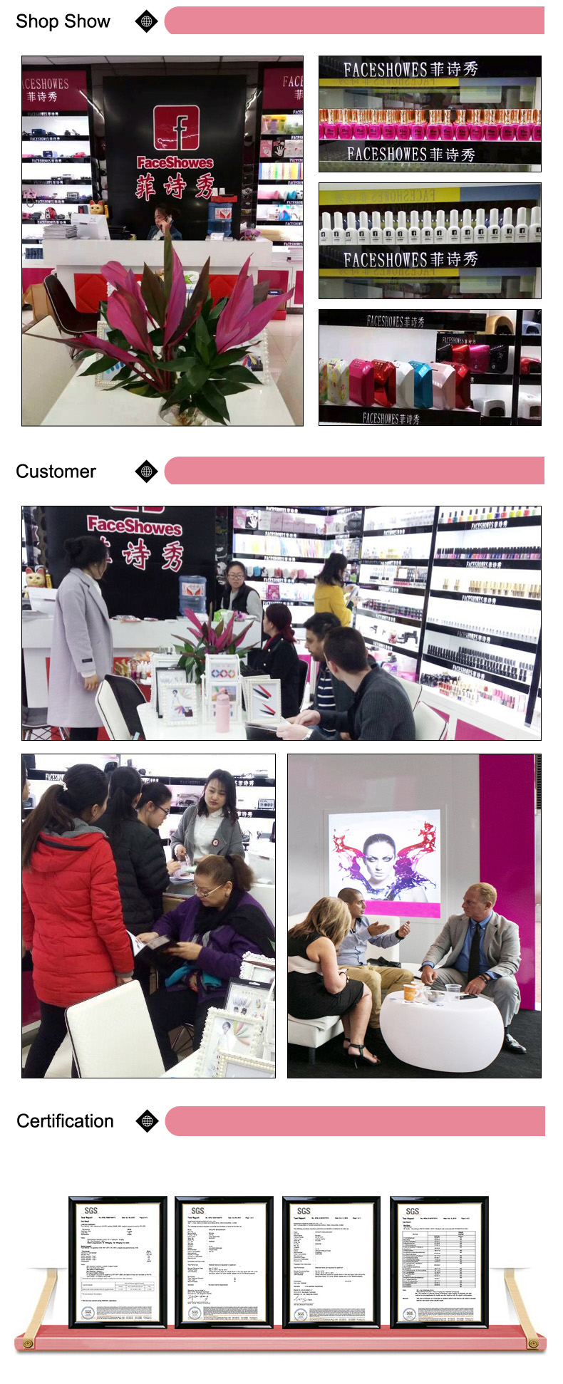 ang aming mga pangunahing produkto ay nail gel polish, UV lamp at nail tool ect.which may 9 na taon na karanasan sa produksyon, benta, set research at development.