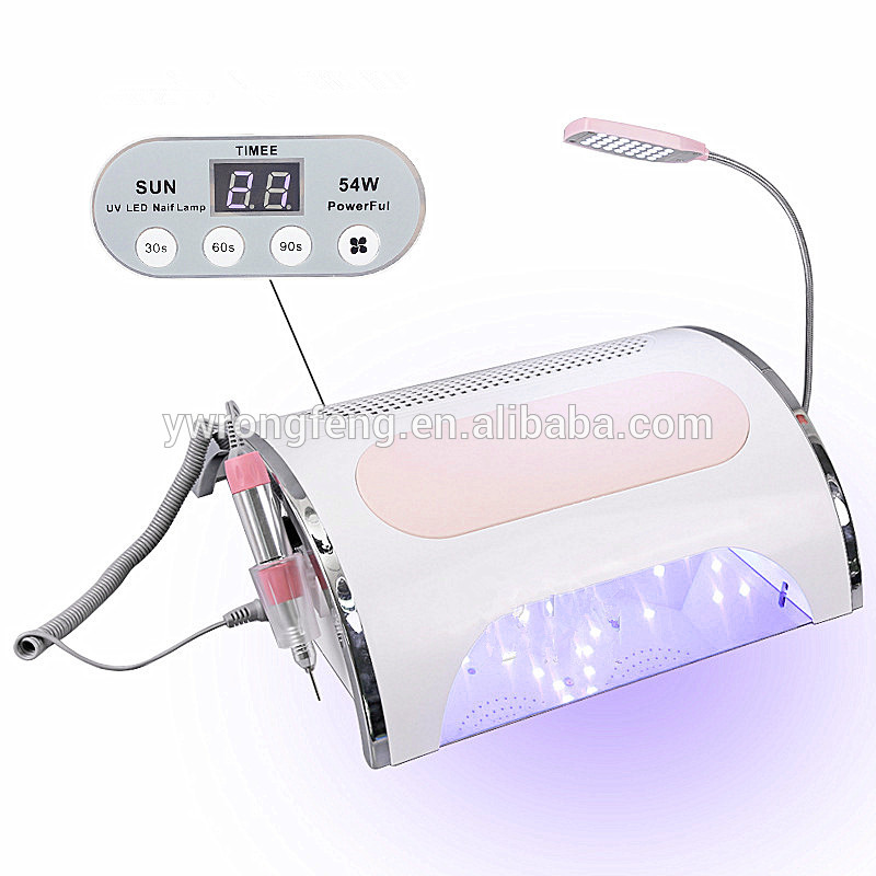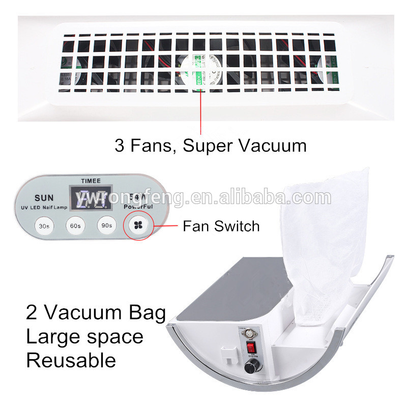 1.4-in-1: Nail Dryer, Nail Drill, Nail Dust Collector, Lighting. 2.Nail Drill Speed:25000RPM , Can be used with different drill bits and sand rings 3.3 fans, super vacuum 4.36 LED/UV Lamp Beads,quickly dry all kinds of glues. 5.Vacuum bag, large space, reusable