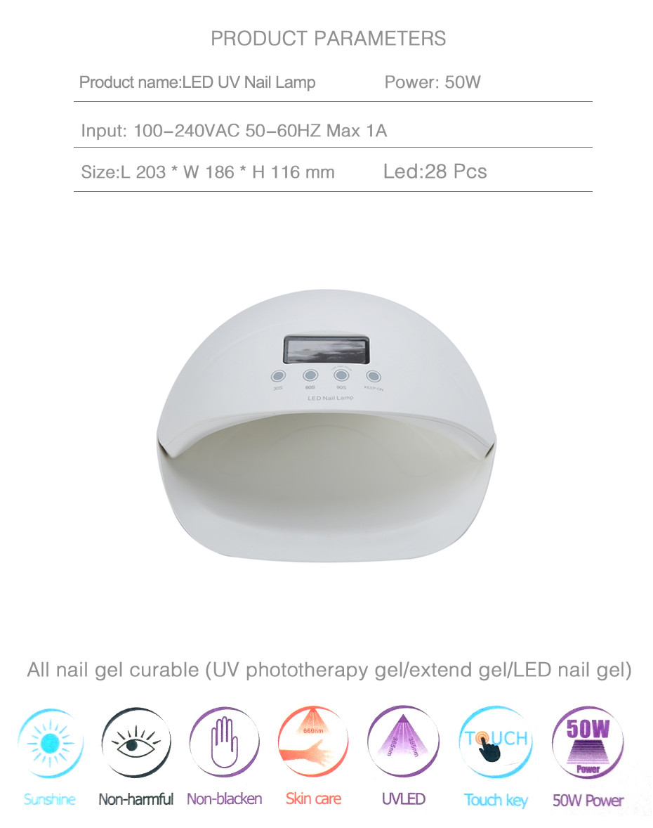 50W Nail Lamp LED UV Lamp for Nails Curing All Gels Manicure Pink Nail Gel Polish with 30s 60s Low Heat 90s Timer