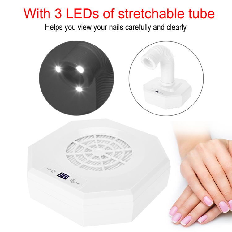 New Retractable Elbow Nail Dust Suction Collector With Strong Fan nail vacuum cleaner Manicure Salon Tools